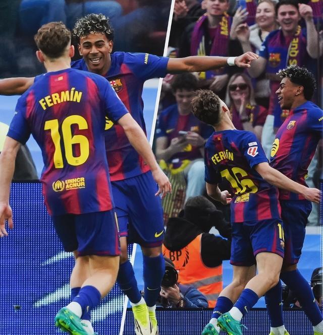 比赛的进程跌宕起伏,充满了青春的活力与老将的坚韧。上半场伊始,巴塞罗那便展现出了强烈的求胜欲望。年轻的小将们用他们不知疲倦的奔跑撕扯着对手的防线。费尔明成为了球队进攻的发动机,他先是助攻亚马尔推射破门,打破了场上的僵局,随后又送出一记精妙的传球,帮助亚马尔内切抽射得手,将比分扩大为2-0。这两个进球,展现了拉玛西亚青训营出品的细腻脚法和敏锐嗅觉,诺坎普的看台上欢呼雷动,球迷们仿佛看到了巴塞罗那未来的无限可能。